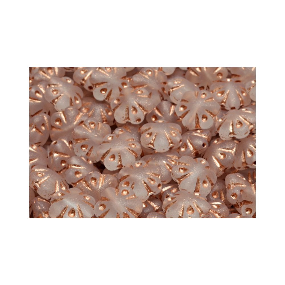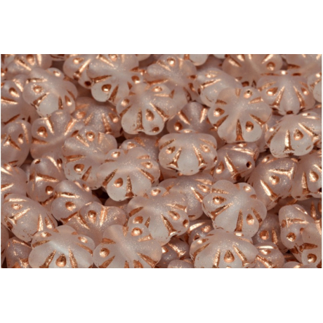 Matný povrch v kombinaci s efektem rose gold vytváří elegantní starožitný vzhled, který vynikne zejména v kombinaci s přírodními materiály. Pro dosažení profesionálního výsledku doporučujeme použít pevnou nit Nymo spolu s korálkovací jehlou velikosti 10 nebo 12, která zajistí plynulý průchod více řadami materiálu. Pro vytvoření bohaté rozkvetlé louky doplňte kytičky o drobné skleněné lístečky. Tento odstín krásně ladí s krystaly v úpravě AB pro zvýšení jasu, ale v kombinaci s bronzovými akcenty nebo černým jetem získá šperk dramatický a luxusní charakter.