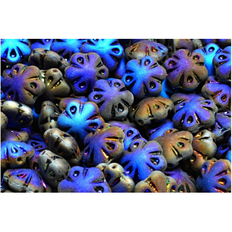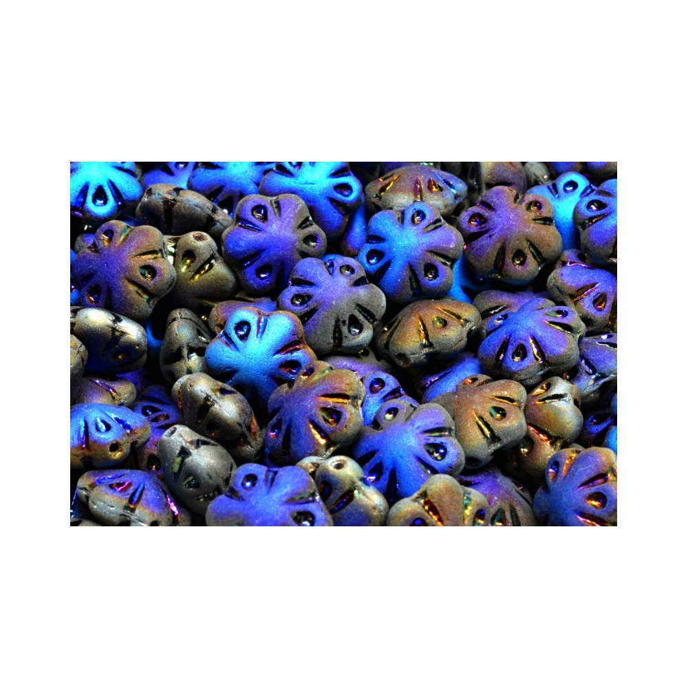 Sytě modrá barva s mystickými kovovými odlesky, která připomíná noční oblohu plnou hvězd, je přesně to, co tyto korálky kytičky od tradičního českého výrobce Rutkovsky definuje. Jejich matný povrch v kombinaci s irisovým efektem dodá vašim autorským šperkům hloubku a neotřelý umělecký nádech, který přitáhne pozornost na první pohled. Co mě na nich baví nejvíc, je jejich schopnost měnit barvu podle úhlu dopadu světla, což z každého kusu dělá originál.
