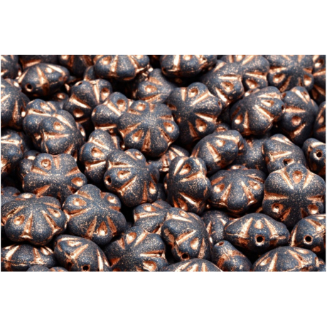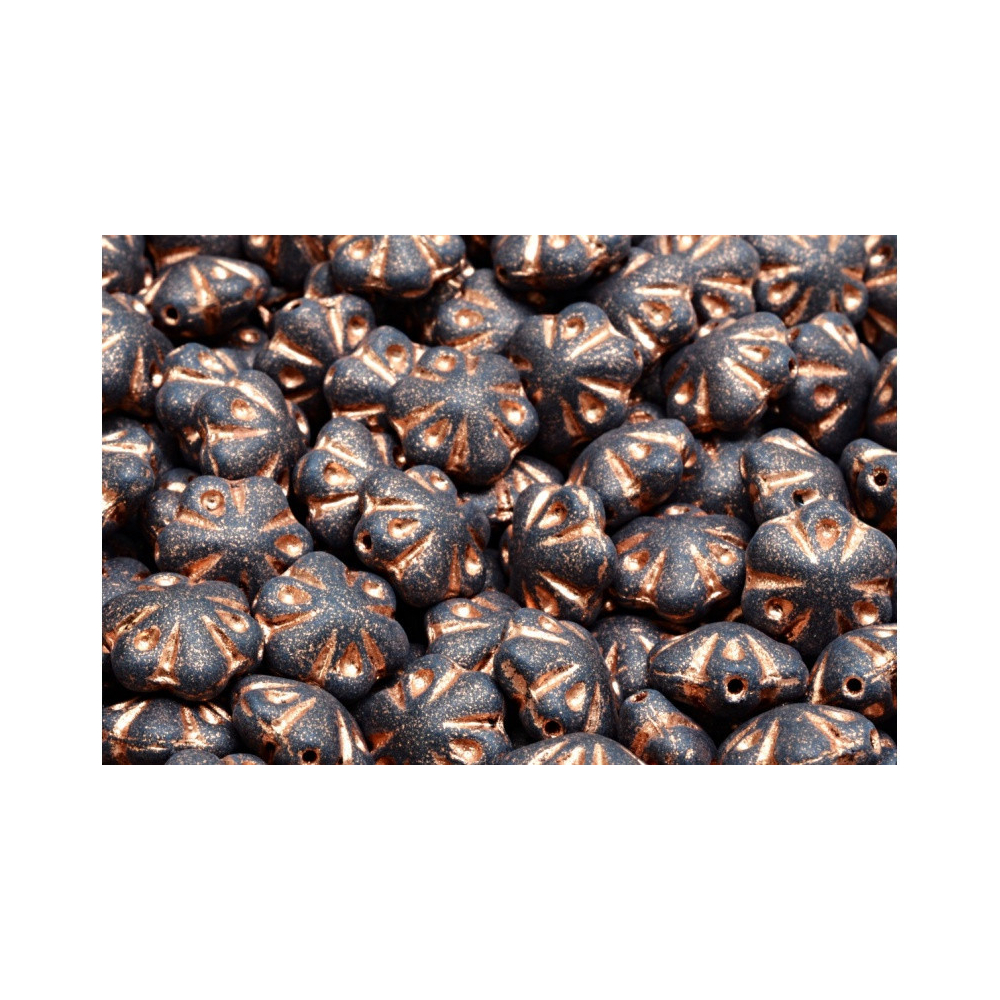 Černý náhrdelník s nádechem historie vznikne spojením těchto precizně tvarovaných kytiček a jemného doplňku, kterým je rokajl Preciosa v bronzovém nebo zlatém odstínu. Korálky Folklorní květiny s rozměrem 11 x 11 mm vynikají hlubokým detailem okvětních lístků, kterému dodává hloubku matná černá barva v kombinaci s bronzovou patinou. Pro výrazný kontrast tyto prvky v designu doplňte čirým crystalem, zatímco harmonického vzhledu dosáhnete spojením s barvami jako je tmavý bronz nebo matná zlatá.