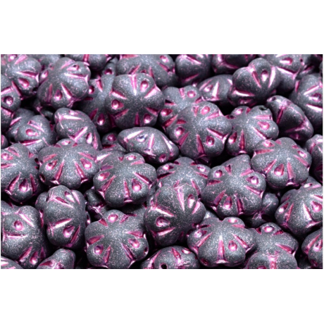 Antracitová barva v kombinaci s růžovým metalickým dekorem zdobí tyto mačkané korálky ve tvaru Folklorní květiny. Tato šedá varianta od renomovaného výrobce Rutkovský o rozměru 11 x 11 mm vyniká detailní texturou, která oživí každý folklorní šperk. Voskované perly a kytičky v romantických špercích vytvoří něžný design, proto doporučujeme kombinovat tyto prvky s voskované perličky. Kvalitní české sklo zaručuje barevnou stálost a dlouhou životnost vašich ručně vyráběných projektů, ať už se rozhodnete pro náušnice nebo náhrdelníky.