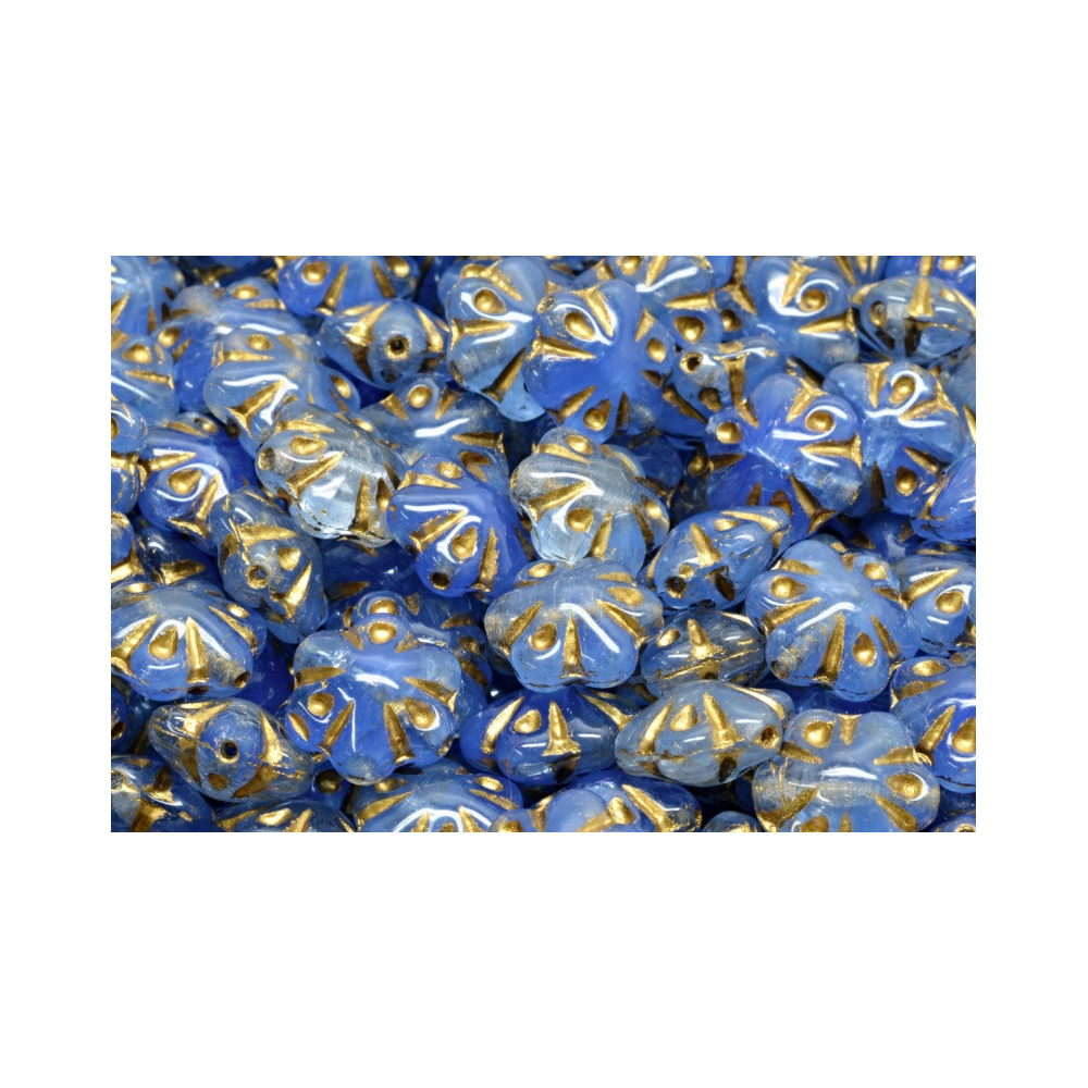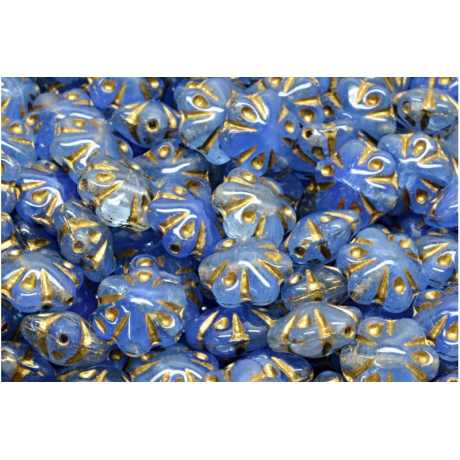 Drobný rozměr 11 x 11 mm a modrá barva se zlatým dekorem v balení po 6 kusech dělají z těchto komponentů univerzální prvek pro tvorbu romantických náušnic nebo hravých dětských náramků. Květiny jsou oboustranné, což zaručuje perfektní vzhled šperku z jakéhokoliv úhlu.