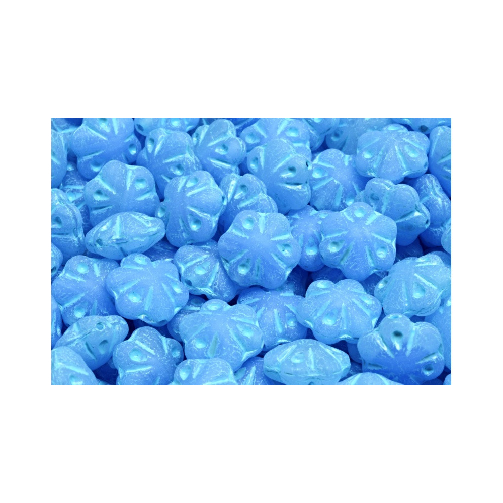 Šperkařské techniky jako ketlování nebo šití z korálků s těmito kvítky získávají nový rozměr, zejména v kombinaci s drobným rokajlem Preciosa ve velikostech 10/0 nebo 8/0. Světle modrá barva s kódem 54308 se skvěle doplňuje s kovovými komponenty v barvě starostříbra či platiny, čímž vytvoříte elegantní a nadčasový šperk pro každou příležitost.