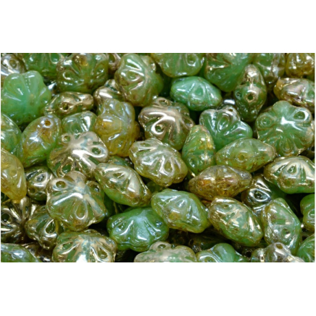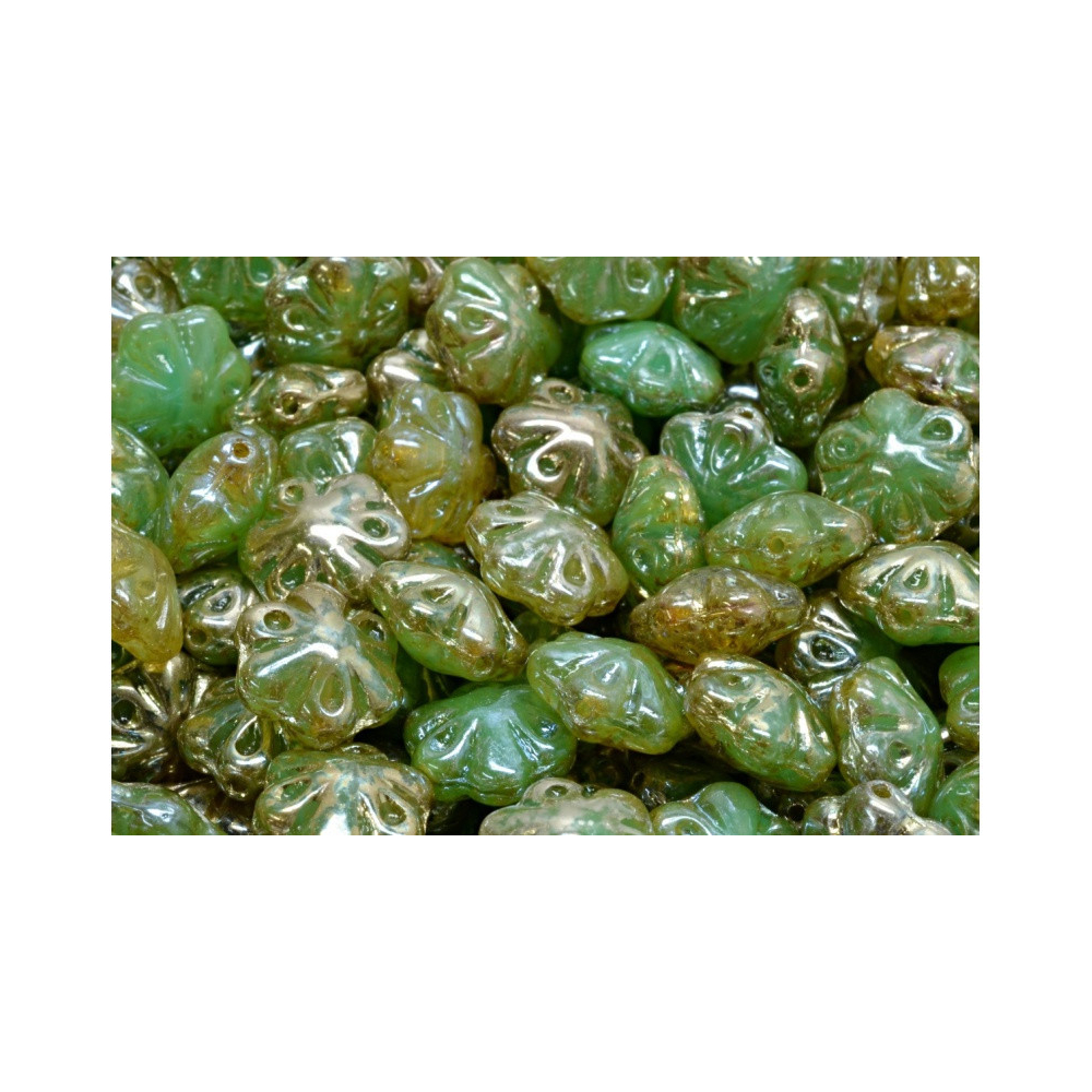 Zelená barva v odstínu peridotu s jemným zlatavým leskem charakterizuje tyto mačkané skleněné korálky ve tvaru pětilisté květiny. Rozměry 11 x 11 mm s precizním průtahem 0,8 mm zaručují snadnou manipulaci při navlékání i šití složitějších vzorů. Tyto Folklore Flower Beads od tradičního českého výrobce Rutkovsky vynikají vysokou kvalitou skloviny a stálostí povrchové úpravy, což oceníte zejména při tvorbě náušnic nebo náhrdelníků. Jako středové korálky v květinových motivech skvěle poslouží drobné skleněné kuličky, které dodají výslednému šperku hloubku a strukturální stabilitu.