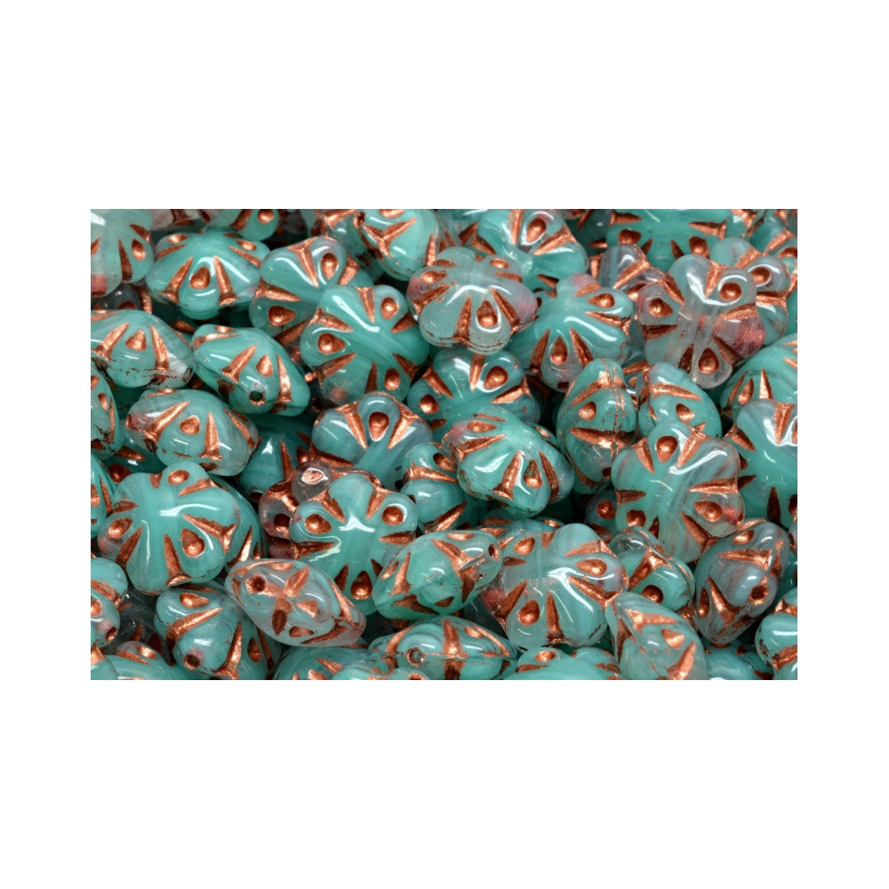 Skleněný materiál od tradičního českého výrobce zaručuje, že si barvy udrží svou hloubku a lesk po dlouhou dobu. V balení najdete 6 ks, což je akorát na jeden pár bohatě zdobených náušnic nebo decentní náramek. Tyrkysová barva s měděnými detaily evokuje patinu na starých špercích, což je trend, který v korálkování nikdy nevyjde z módy.