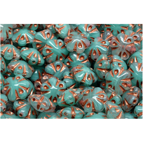 Co mě na těchto drobných květech nejvíce baví, je jejich variabilita a způsob, jakým odrážejí světlo. Folklorní květiny o rozměru 11 x 11 mm se skvěle doplňují s drobným rokajlem Preciosa v barvě mědi nebo bronzu. Pokud tvoříte šperky v boho stylu, tyto tyrkysové korálky s kódovým označením R0613-54319 nesmí ve vaší sbírce chybět.