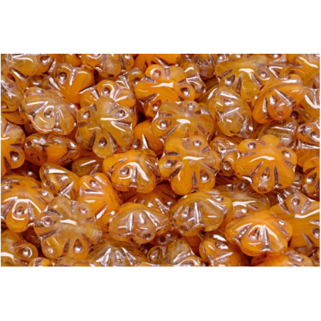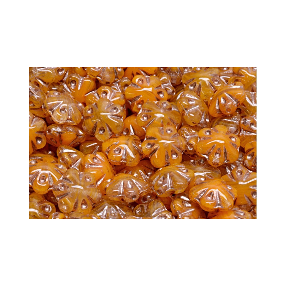 Oranžová barva v hřejivém medovém odstínu definuje tyto precizně lisované prvky o rozměru 11 x 11 mm, které pocházejí z věhlasné české produkce značky Rutkovsky. Každý kus z řady Folklore Flower Beads vykazuje dokonalou tvarovou symetrii s pěti okvětními lístky a hladký průtah o průměru 0,8 mm, což zajišťuje bezproblémové navlékání na bižuterní lanka i tenké jehly. Tento skleněný materiál je ceněn pro svou barevnou stálost a vysoký lesk, který podtrhuje detailní reliéf folklorního motivu.