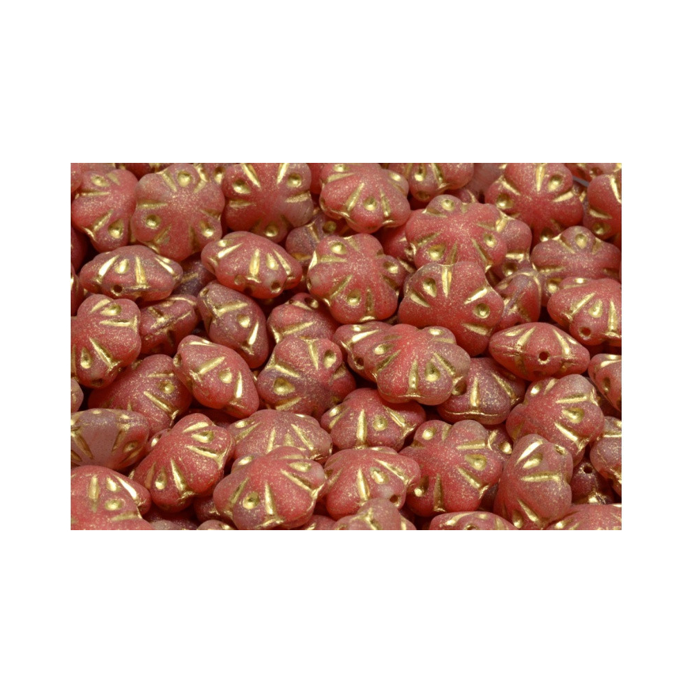 Vínová barva s jemným zlatým dekorem v prohlubních okvětních lístků dodává těmto mačkaným korálkům nezaměnitelný nádech historie a lidové tradice. Na rozdíl od běžných hladkých kuliček vynikají Korálky Folklorní květiny svou precizní modelací a odolným sklem od renomovaného českého výrobce Rutkovsky. Tato červená varianta o velikosti 11 x 11 mm se skvěle hodí pro tvorbu náušnic, kde vynikne jejich oboustranný design, přičemž jako zářivé pestíky můžete do středu zakomponovat české broušené ohňovky.