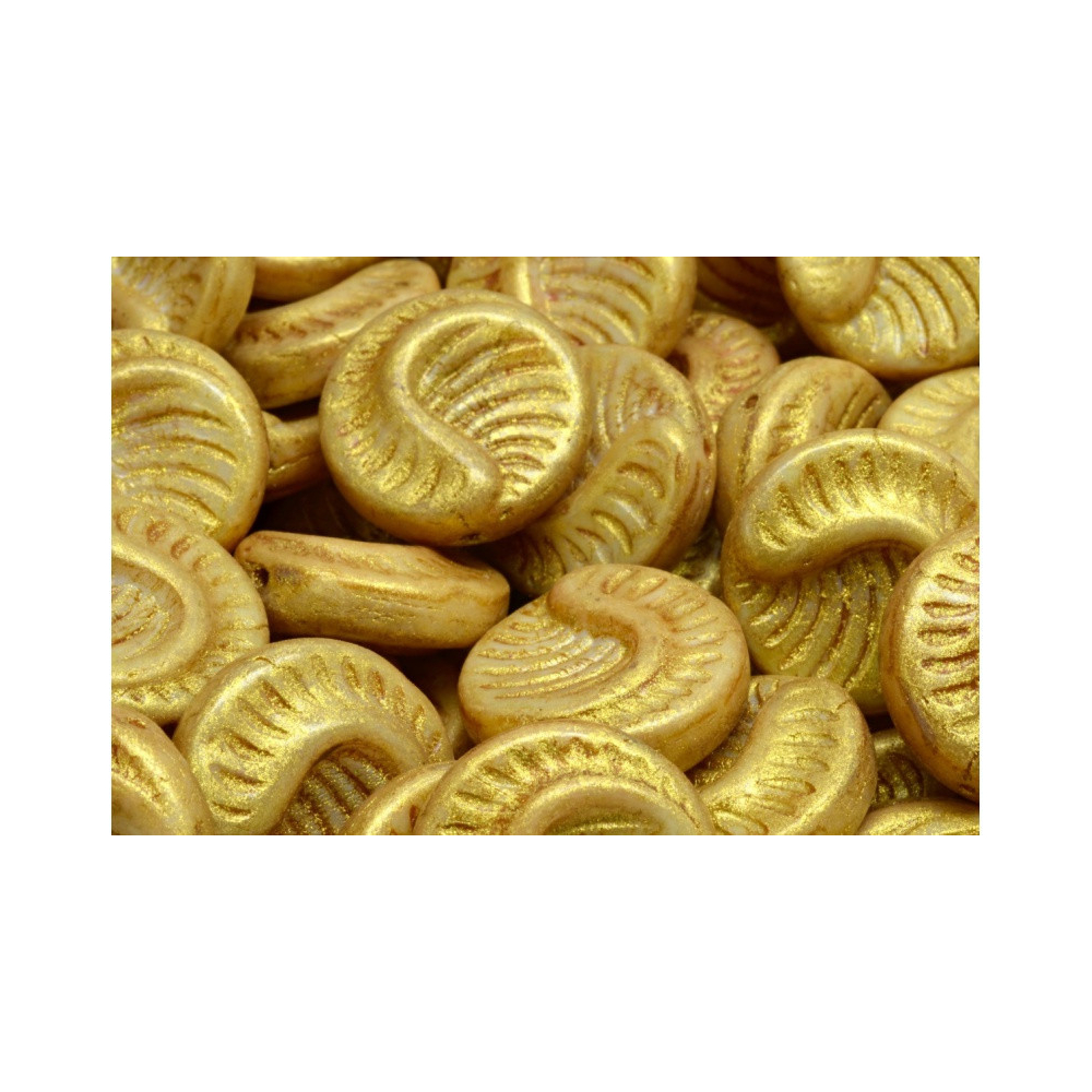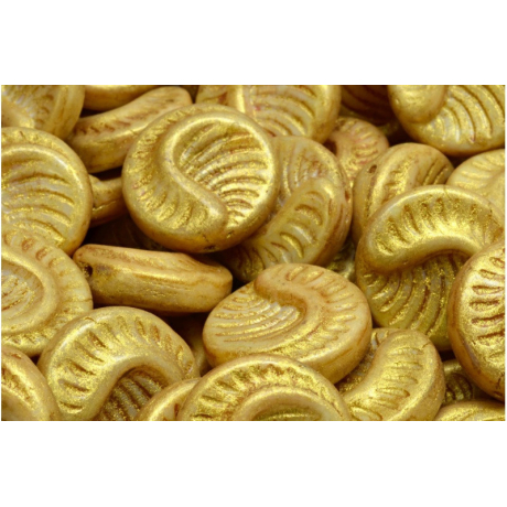 Zlatavé odlesky na pískovém podkladu evokují prastarou krásu zkamenělin nalezených na prosluněném pobřeží. Tyto Fossil Coin Beads z rodinné dílny Rutkovský představují vrchol tradičního českého sklářství, kde je každý kus výsledkem pečlivé ruční práce a rodinné tradice. Unikátní forma připomínající amonita dodá vašim projektům hloubku a organický nádech, který je v moderním šperkařství velmi žádaný.