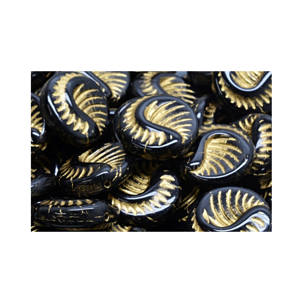 Černozlatý kontrast těchto luxusních elementů přímo vybízí k vytvoření dominantního náhrdelníku v orientálním stylu nebo dvojice výrazných náušnic. Fossil Coin Beads v odstínu Black Opaque, Gold Painted o rozměru 19 x 19 mm působí díky svému reliéfu velmi starožitným dojmem a skvěle doplní drobný rokajl v metalických tónech. Výrazný spirálovitý vzor vynikne zejména v kombinaci s jednoduchými kovovými komponenty, které nechají promluvit precizní detail českého skla a unikátní techniku zpracování.