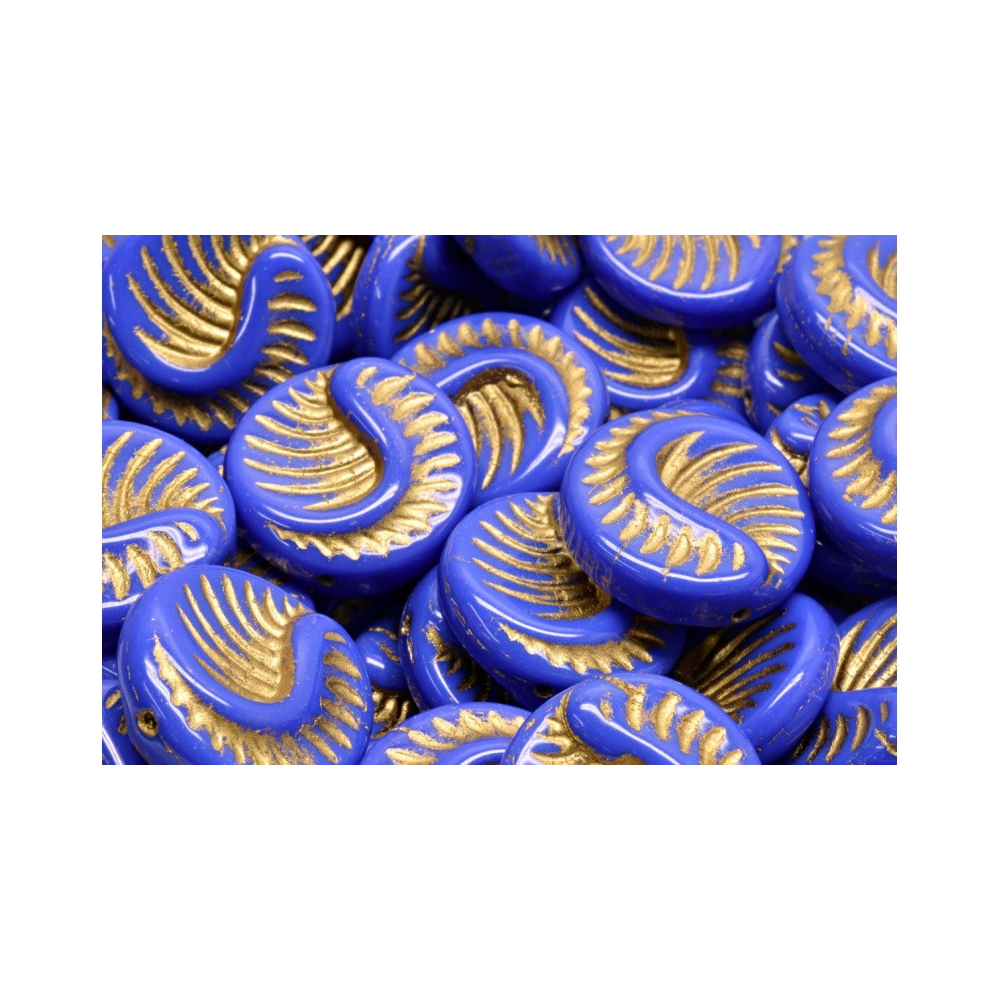 Fossil Coin Beads OPAQUE BLUE Gold Painted