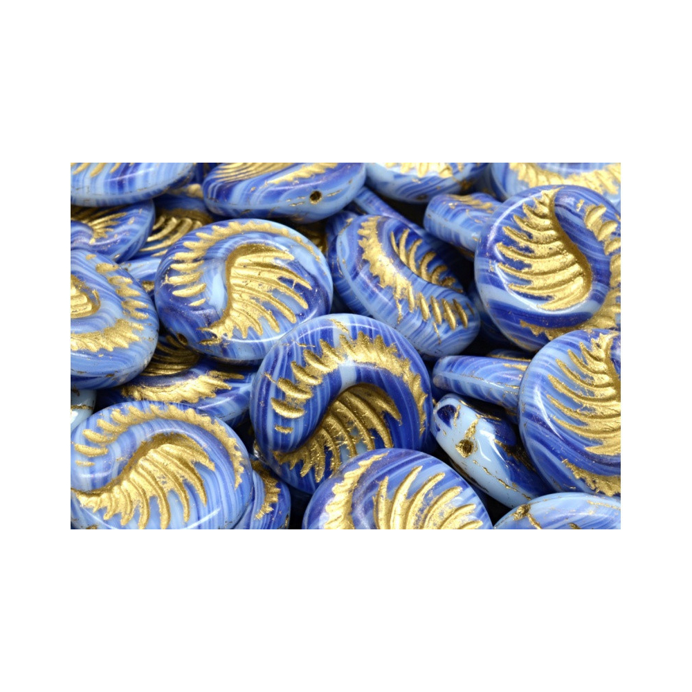 Fossil Coin Beads OPAQUE BLUE Gold Painted Velikost: 19 x 19 mm Velikost průtahu: 0,8 mm Balení:...
