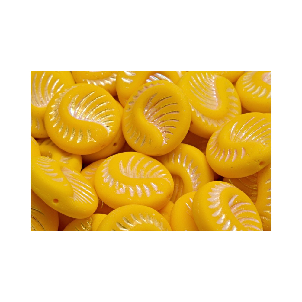 Sytě žlutá barva s kódem 93110-28703-84100 je v hlubokých rýhách zvýrazněna jemným iridescentním leskem, který vytváří podmanivý vizuální kontrast s matnějším povrchem základního skla. Rutkovský, Česká republika je zárukou kvality, díky čemuž tyto jedinečné formy květinových a přírodních korálků zůstávají stálobarevné a odolné. V balení naleznete 2 kusy, což je ideální počet pro symetrický design náušnic nebo jako doplňkové akcenty do bohatě zdobeného náramku.