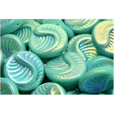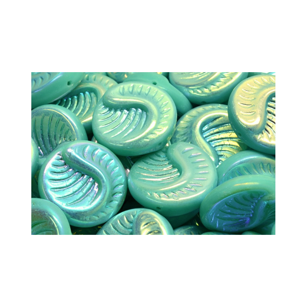 Průměr 19 x 19 mm zaručuje, že Fossil Coin Beads vyniknou jako dominantní přívěsky na náušnicích nebo jako originální středový motiv náhrdelníku. Široký průtah o velikosti 0,8 mm umožňuje snadnou manipulaci a bezproblémové navlékání na různé druhy bižuterních materiálů. Tyrkysová barva s jemným leskem se skvěle doplňuje s kovovými komponenty ve stříbrném i zlatém provedení.
