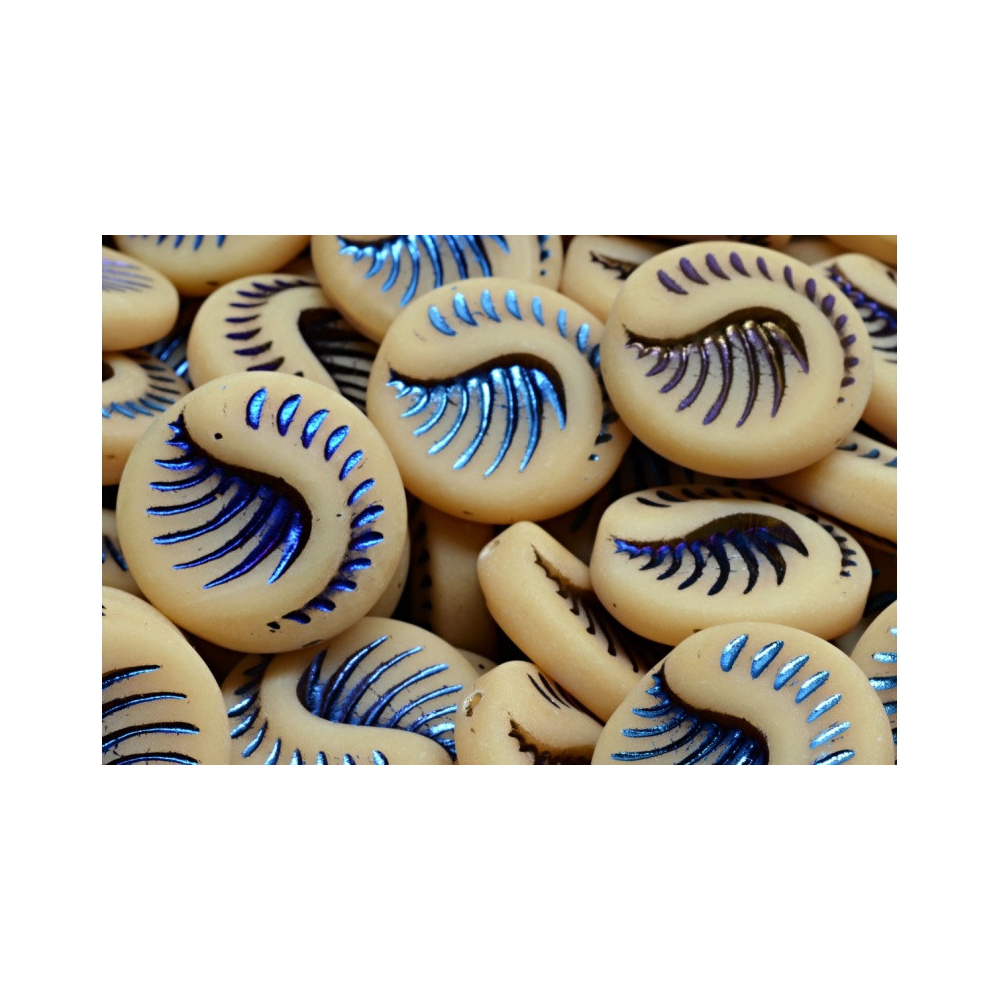 Fossil Coin Beads OPAQUE BLUE AB MAT Velikost: 19 x 19 mm Velikost průtahu: 0,8 mm Balení: 2 ks...