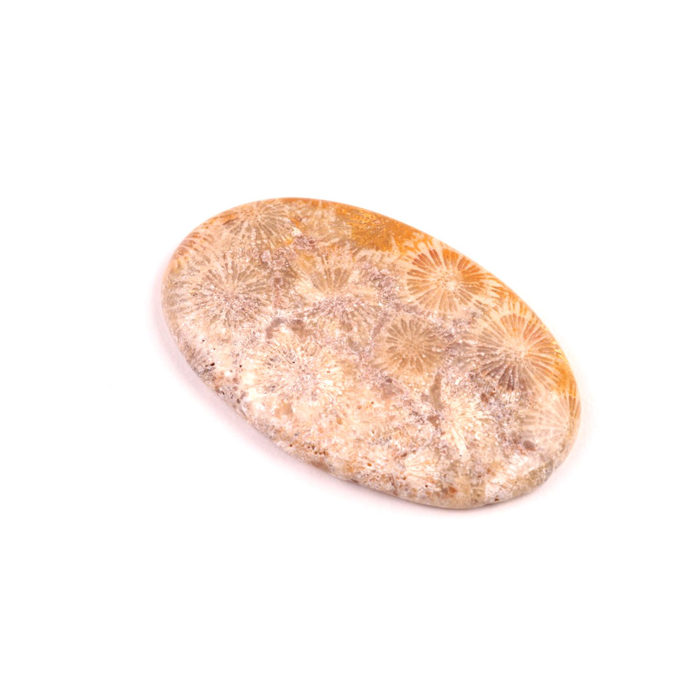 Kabošon z přírodního kamene Fossil Coral je fascinující přírodní kámen, který v sobě zachycuje otisk prastarých korálových struktur, vzniklých před miliony let. Tento kámen je oblíbený pro své unikátní květinové vzory, které připomínají korálové květy v různých odstínech béžové, hnědé a zlaté. Fossil Coral není jen krásný, ale také symbolizuje stabilitu, spojení s přírodou a podporou intuice.