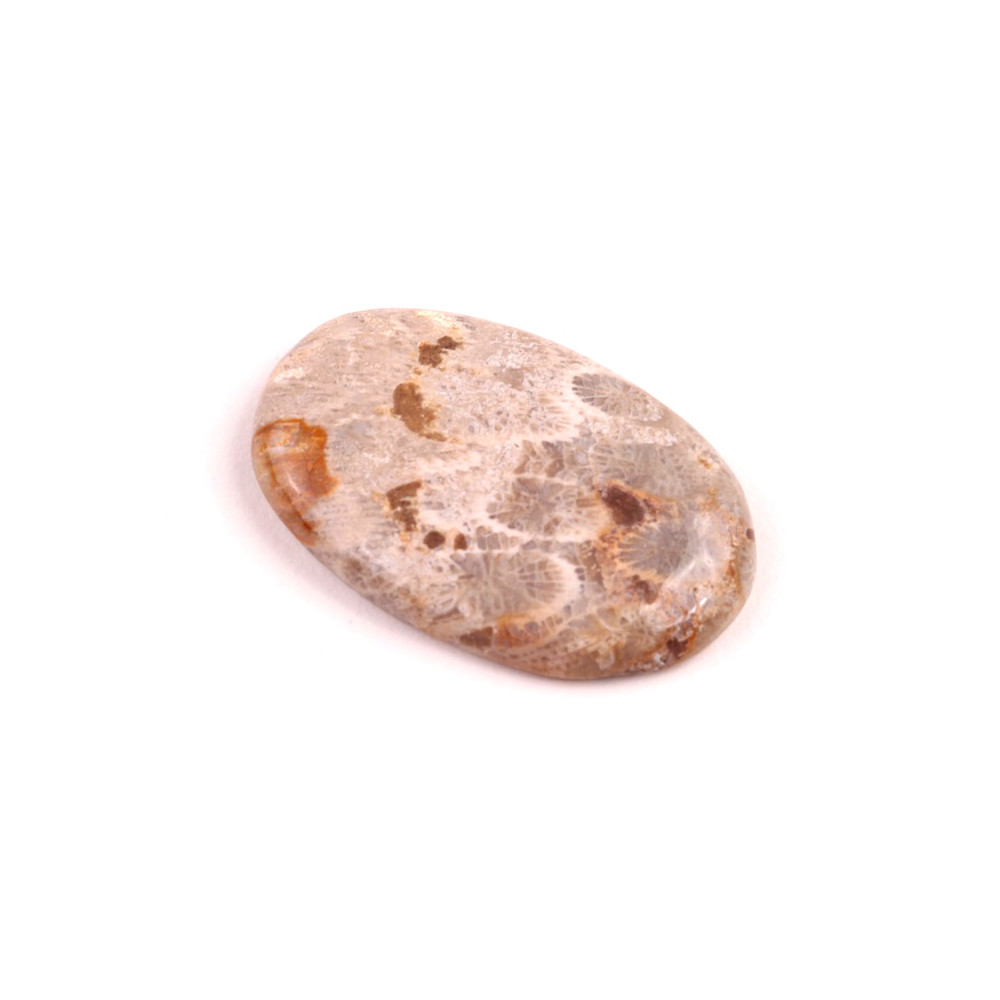 Kabošon z přírodního kamene Fossil Coral je fascinující přírodní kámen, který v sobě zachycuje otisk prastarých korálových struktur, vzniklých před miliony let. Tento kámen je oblíbený pro své unikátní květinové vzory, které připomínají korálové květy v různých odstínech béžové, hnědé a zlaté. Fossil Coral není jen krásný, ale také symbolizuje stabilitu, spojení s přírodou a podporou intuice.