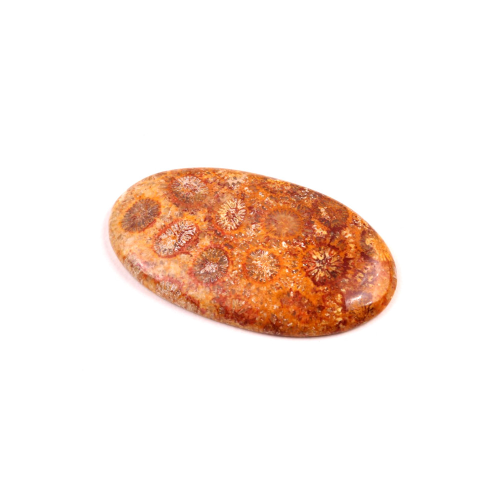 Kabošon z přírodního kamene Fossil Coral je fascinující přírodní kámen, který v sobě zachycuje otisk prastarých korálových struktur, vzniklých před miliony let. Tento kámen je oblíbený pro své unikátní květinové vzory, které připomínají korálové květy v různých odstínech béžové, hnědé a zlaté. Fossil Coral není jen krásný, ale také symbolizuje stabilitu, spojení s přírodou a podporou intuice.