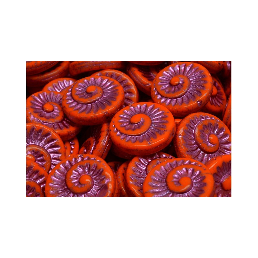 Fossil Shell Beads ORANGE OPAQUE/GOLD Velikost: 18 x 18 mm Velikost průtahu: 0,8 mm Balení: 2 ks...