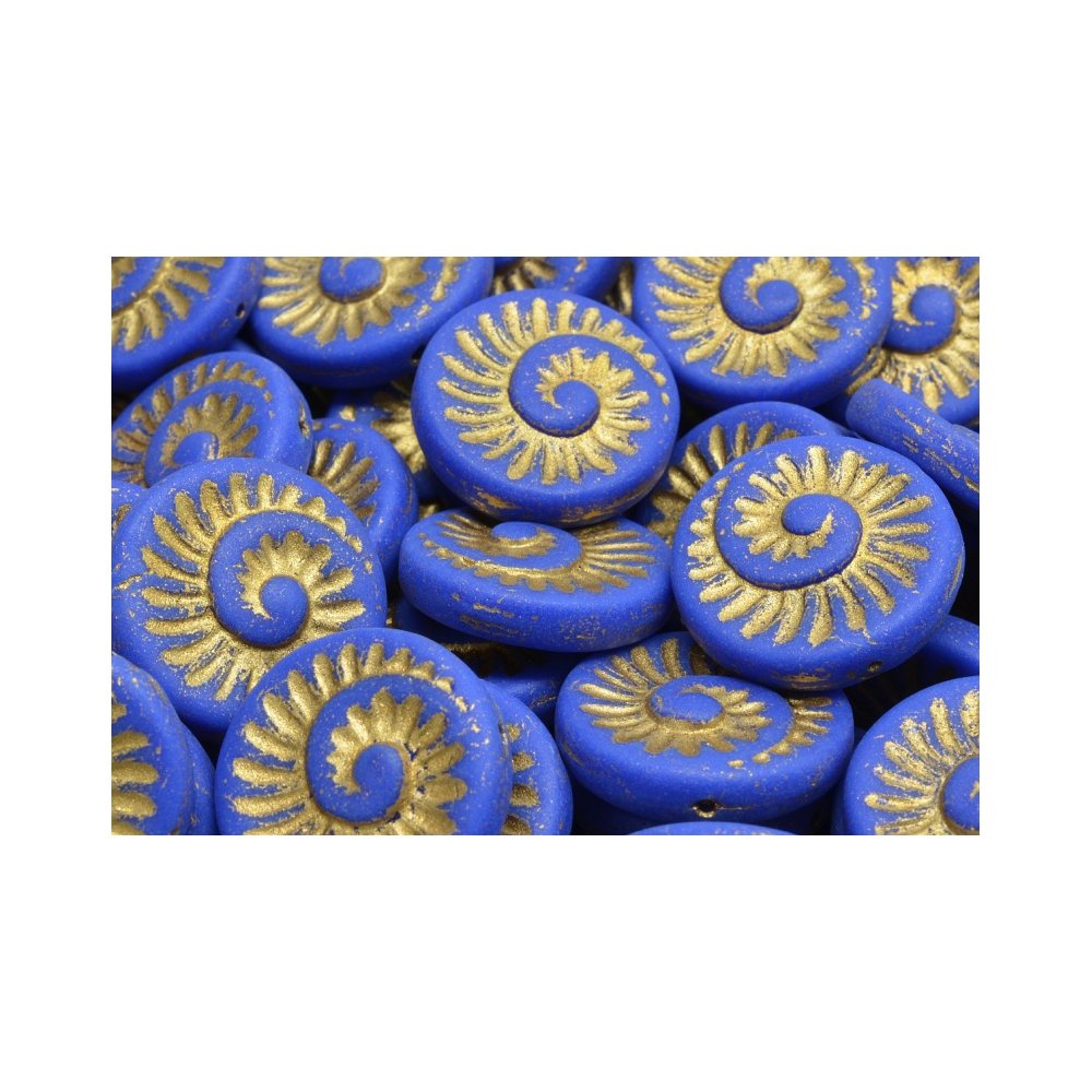 Fossil Shell Beads DARK AQUAMARINE MAT/GOLD Velikost: 18 x 18 mm Velikost průtahu: 0,8 mm Balení:...