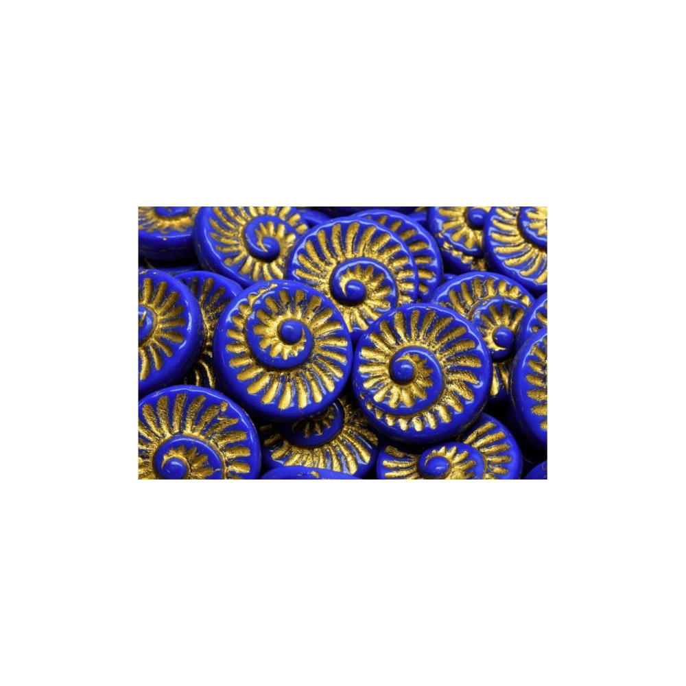 Výrazný náhrdelník s námořnickou tematikou získá jedinečný charakter díky těmto ručně mačkaným komponentům. Modré skleněné korálky s tvarem Fossil Shell Beads o velikosti 18 x 18 mm nesou pečeť rodinné tradice firmy Rutkovský. Tradiční české sklářství se zde snoubí s precizním detailem zlatavé patiny, která zvýrazňuje spirálovitou strukturu mušle a dodává šperku hloubku.