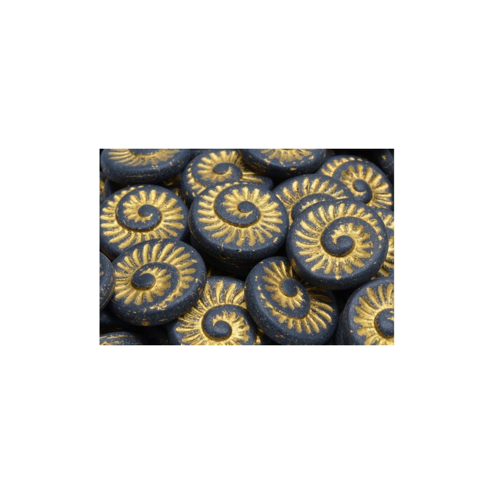 Fossil Shell Beads DARK AQUAMARINE/GOLD Velikost: 18 x 18 mm Velikost průtahu: 0,8 mm Balení: 2...
