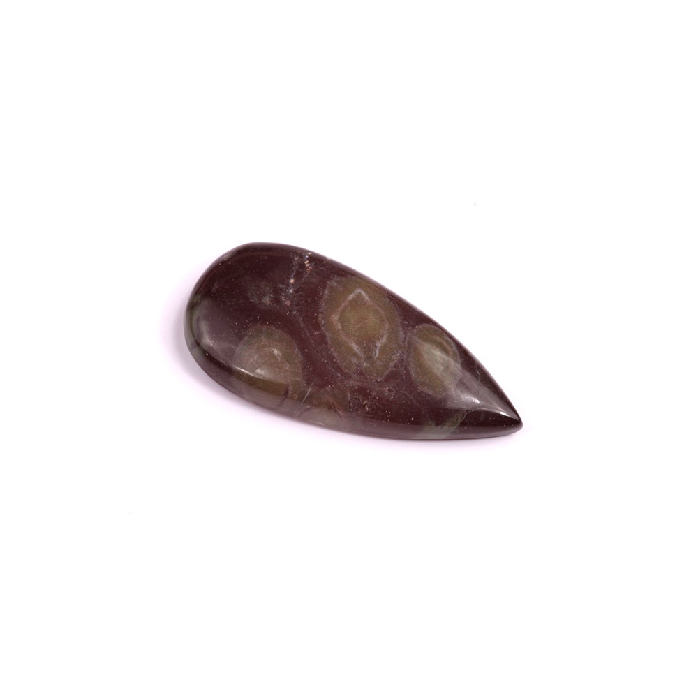 Galaxy Star Jasper je jedinečný přírodní kámen, který svým temně hnědým až zeleným podkladem, zdobeným kruhovými vzory připomínajícími vzdálené galaxie, přitahuje pozornost každého milovníka minerálů a šperků. Tyto výrazné kruhové obrazce vytváří fascinující efekt připomínající pohled do noční oblohy plné hvězd. Tento kabošon je ideální volbou pro ty, kteří hledají výjimečný kámen s mystickým a hlubokým vzhledem.