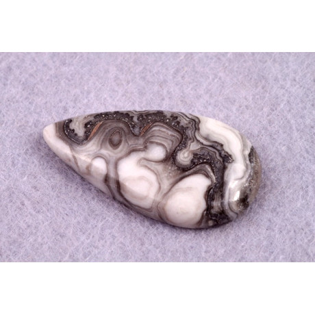 Kabošon z přírodního kamene Grey Crazy Lace (Šedá Bláznivá Krajka, Mexiko) Velikost cca 27x5 mm...