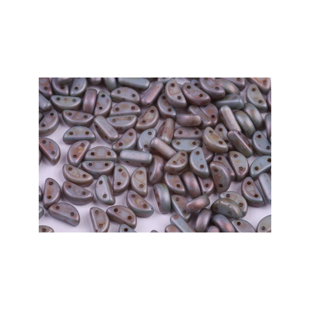 Objevte Half Moon, jedinečné skleněné korálky ve tvaru půlměsíce, které dodají vašim šperkům jemnost, originalitu a neotřelý design. Díky dvěma průtahům o průměru 0,7 mm umožňují stabilní a přesné propojení v různých vzorech, což je činí ideálními pro šité šperky, víceřadé náramky a netradiční náhrdelníky.