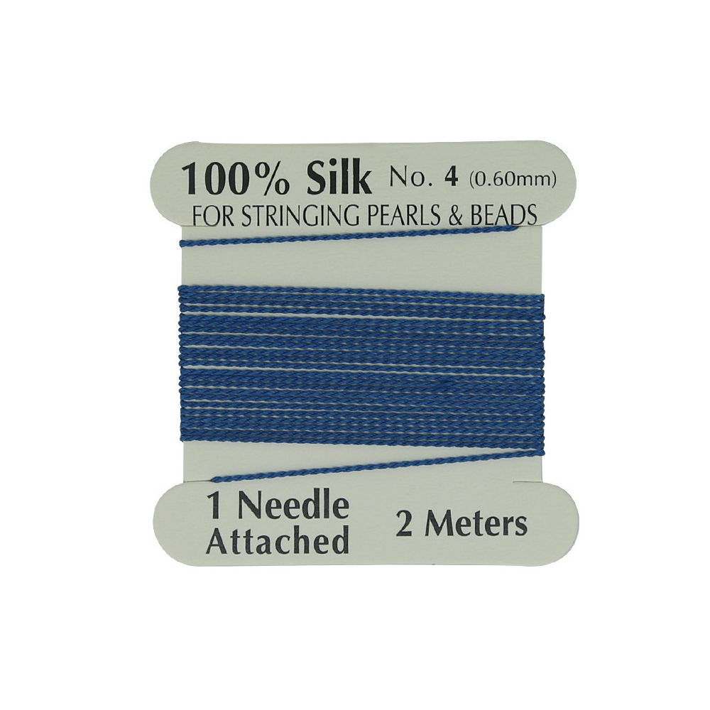 Hedvábná nit s jehlou Průměr: 0,8 mm Balení: 2 metry Barva: modrá (Royal Blue)