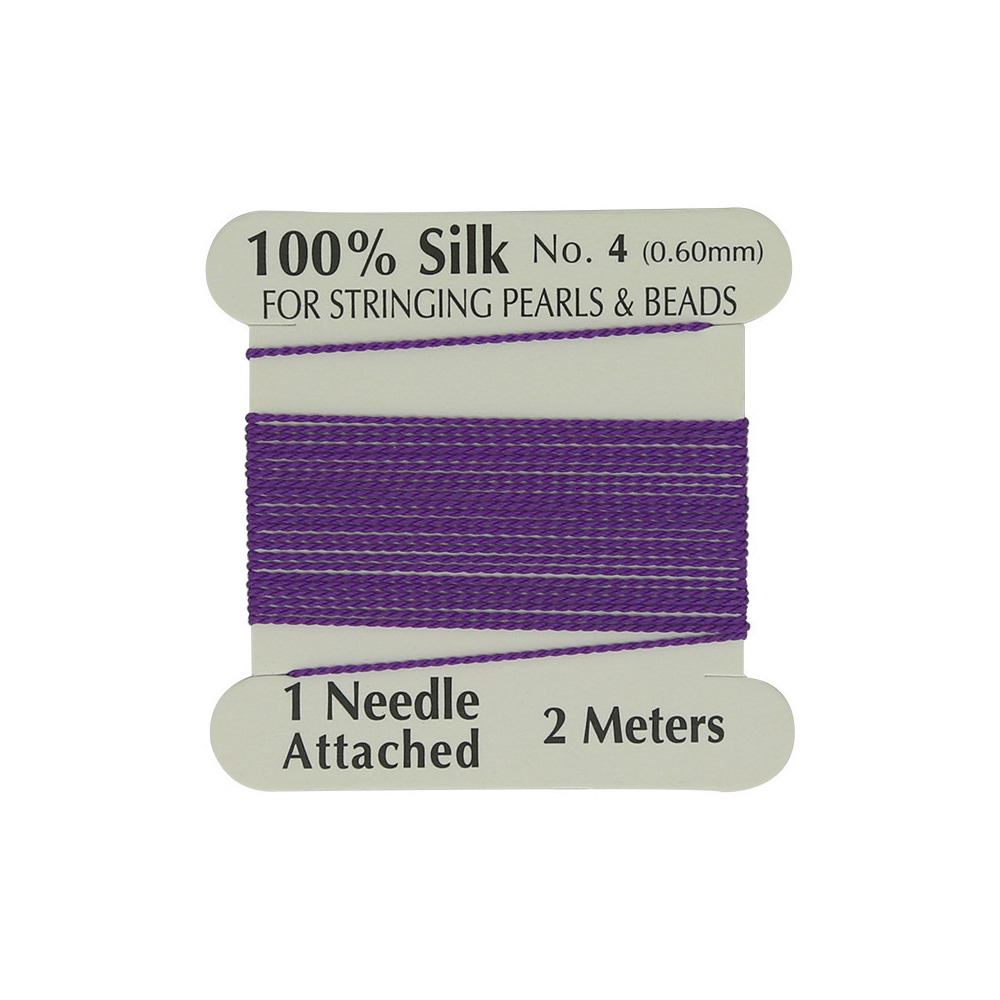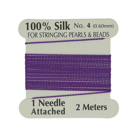 Hedvábná nit s jehlou Průměr: 0,7 mm Balení: 2 metry Barva: fialová (Plum)