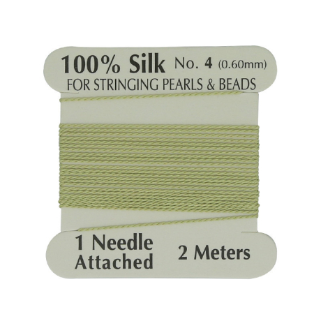Hedvábná nit s jehlou Průměr: 0,45 mm Balení: 2 metry Barva: Béžová (Ecru)