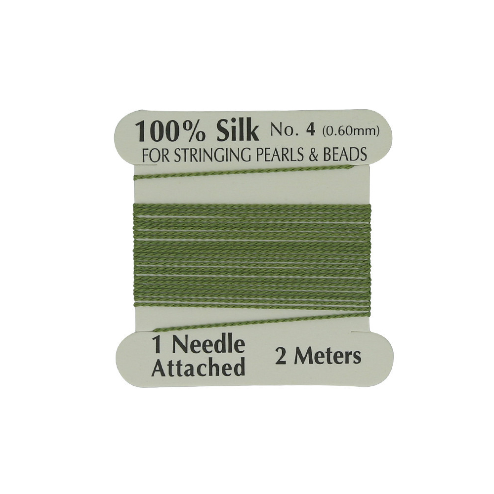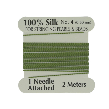 Hedvábná nit s jehlou Průměr: 0,8 mm Balení: 2 metry Barva: Zelená (Dark Green)