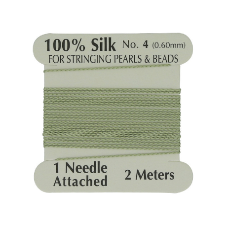 Hedvábná nit s jehlou Průměr: 0,45 mm Balení: 2 metry Barva: Zelená (Green)