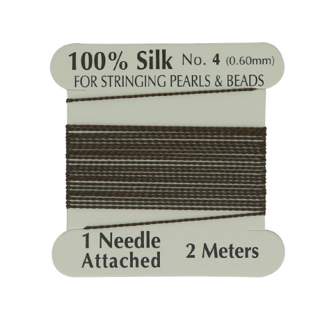 Hedvábná nit s jehlou Průměr: 0,8 mm Balení: 2 metry Barva: Tmavě hnědá (Chestnut)