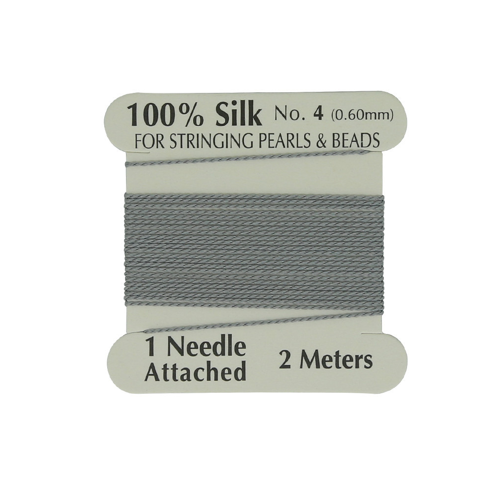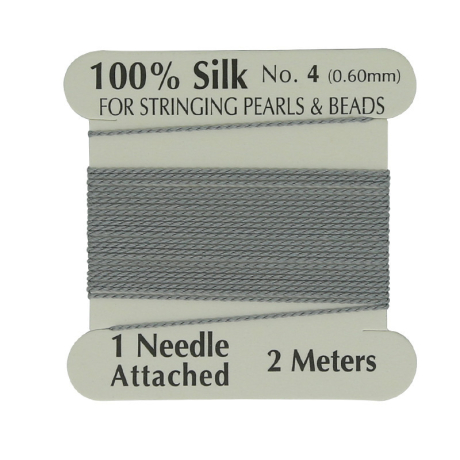 Hedvábná nit s jehlou Průměr: 0,7 mm Balení: 2 metry Barva: Ocelově šedá (Steel Grey)