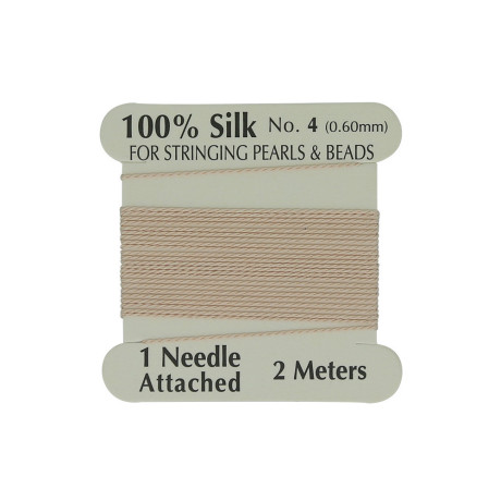 Hedvábná nit s jehlou Průměr: 0,7 mm Balení: 2 metry Barva: Béžová (Ecru)