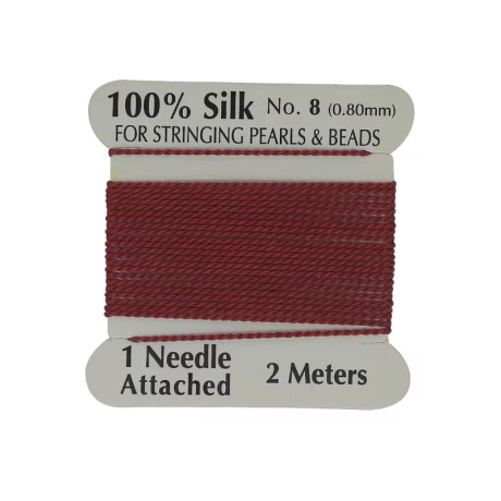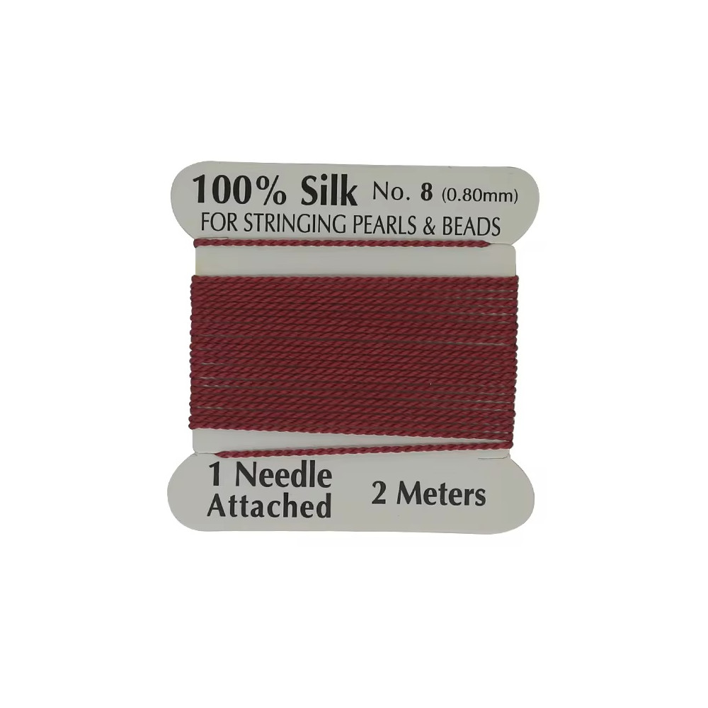 Hedvábná nit s jehlou Průměr: 0,8 mm Balení: 2 metry Barva: Červená (Red)