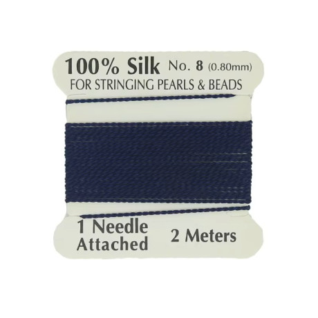 Hedvábná nit s jehlou Průměr: 0,8 mm Balení: 2 metry Barva: modrá (Royal Blue)