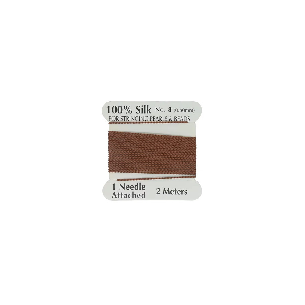 Hedvábná nit s jehlou Průměr: 0,8 mm Balení: 2 metry Barva: Tmavě hnědá (Chestnut)