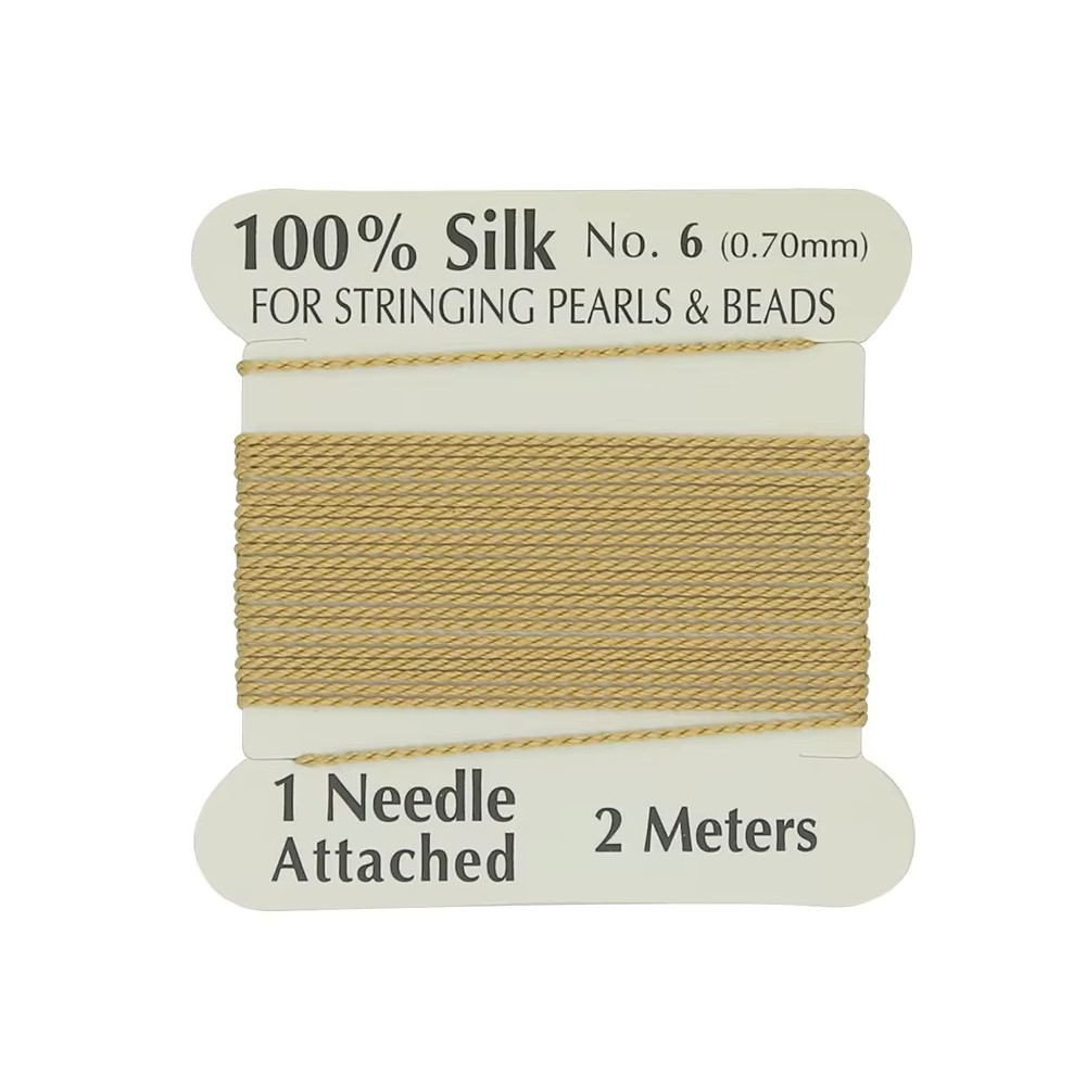 Když přijde řeč na vytváření luxusní bižuterie, hedvábná nit je tím nejlepším, co můžete použít. Představujeme vám hedvábnou nit o průměru 0,7 mm a délce 2 metry, dodávanou s integrovanou jehlou, připravenou k okamžitému použití.