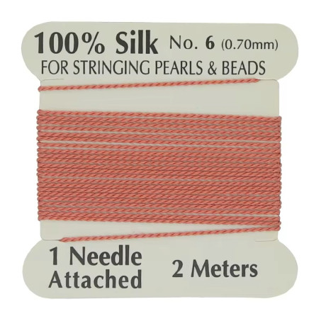 Hedvábná nit s jehlou Průměr: 0,8 mm Balení: 2 metry Barva: Červená (Coral)