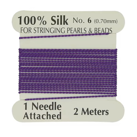 Hedvábná nit s jehlou Průměr: 0,8 mm Balení: 2 metry Barva: fialová (Plum)