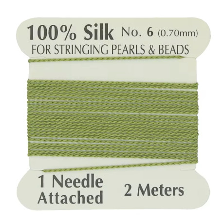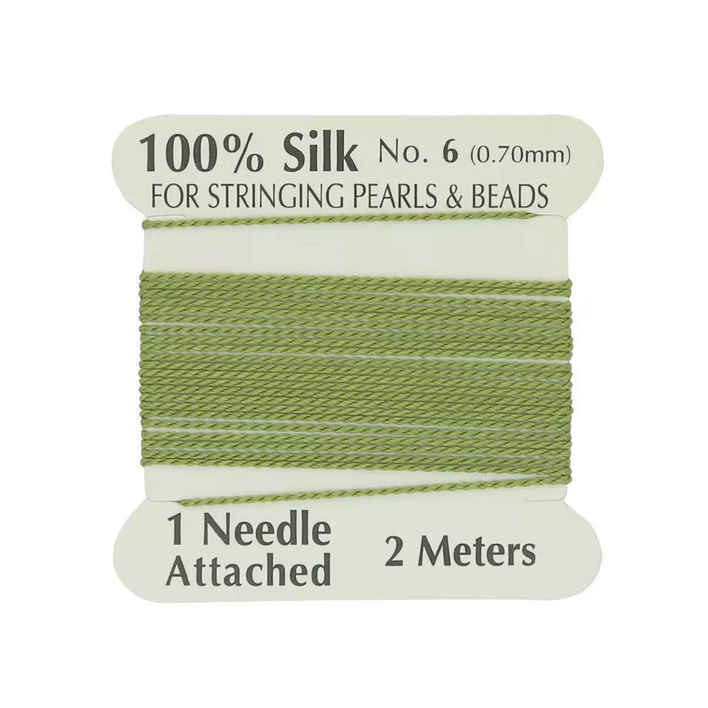 Hedvábná nit s jehlou Průměr: 0,8 mm Balení: 2 metry Barva: Zelená (Green)