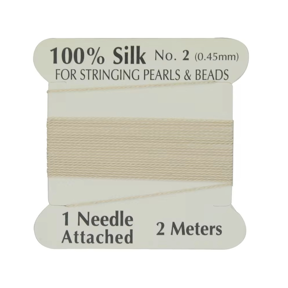 Když přijde řeč na vytváření luxusní bižuterie, hedvábná nit je tím nejlepším, co můžete použít. Představujeme vám hedvábnou nit o průměru 0,45 mm a délce 2 metry, dodávanou s integrovanou jehlou, připravenou k okamžitému použití.