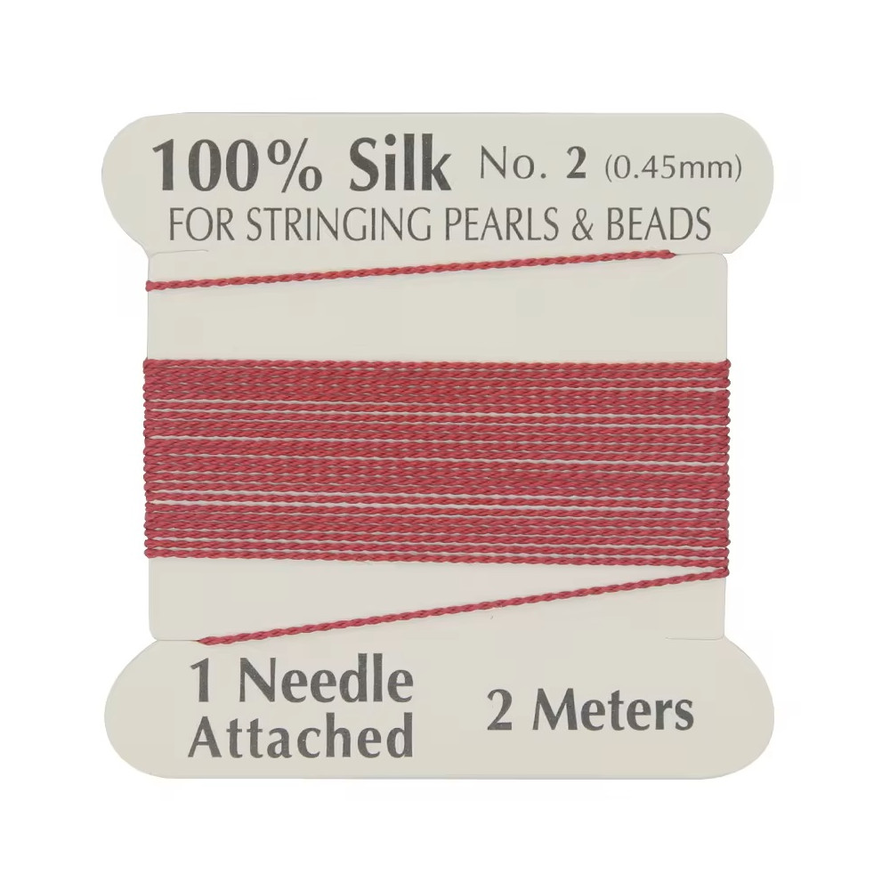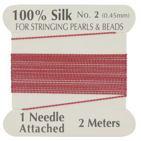 Hedvábná nit s jehlou Průměr: 0,7 mm Balení: 2 metry Barva: Červená (Red)