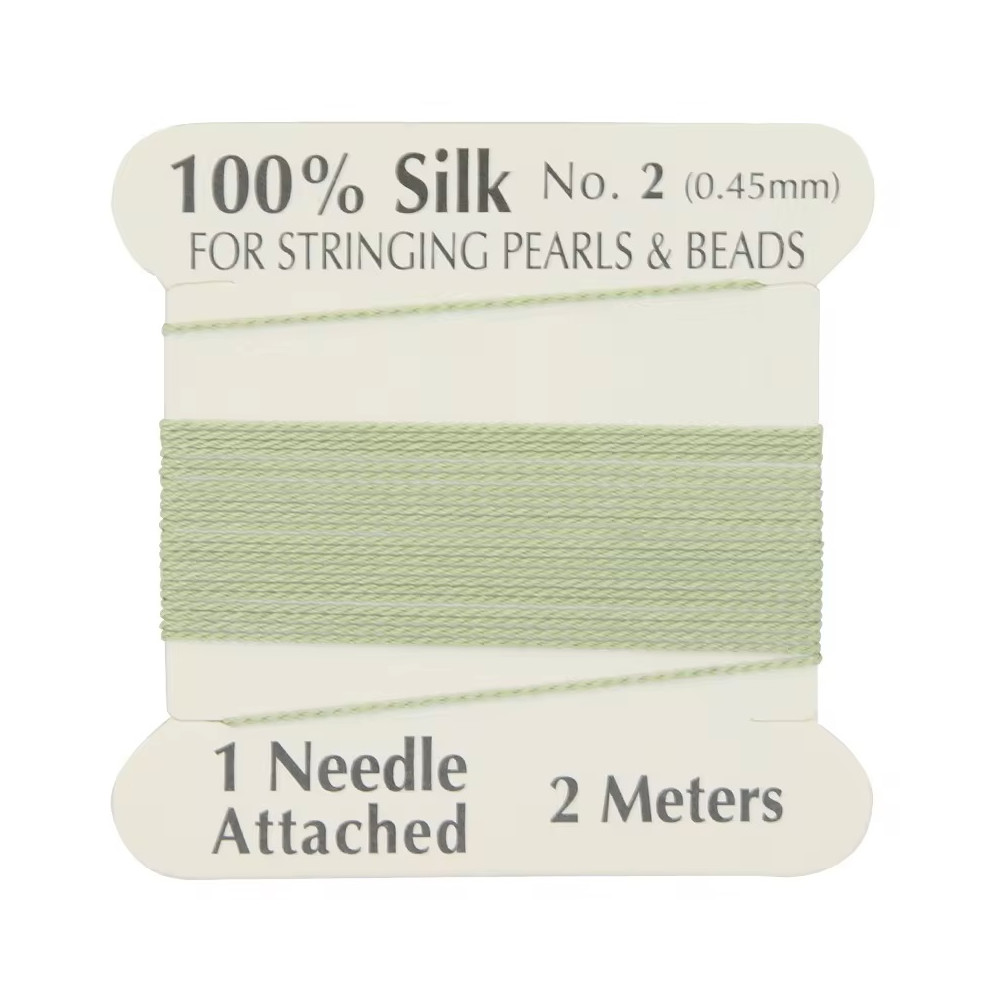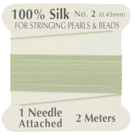 Hedvábná nit s jehlou Průměr: 0,7 mm Balení: 2 metry Barva: Světle zelená (Pale Green)