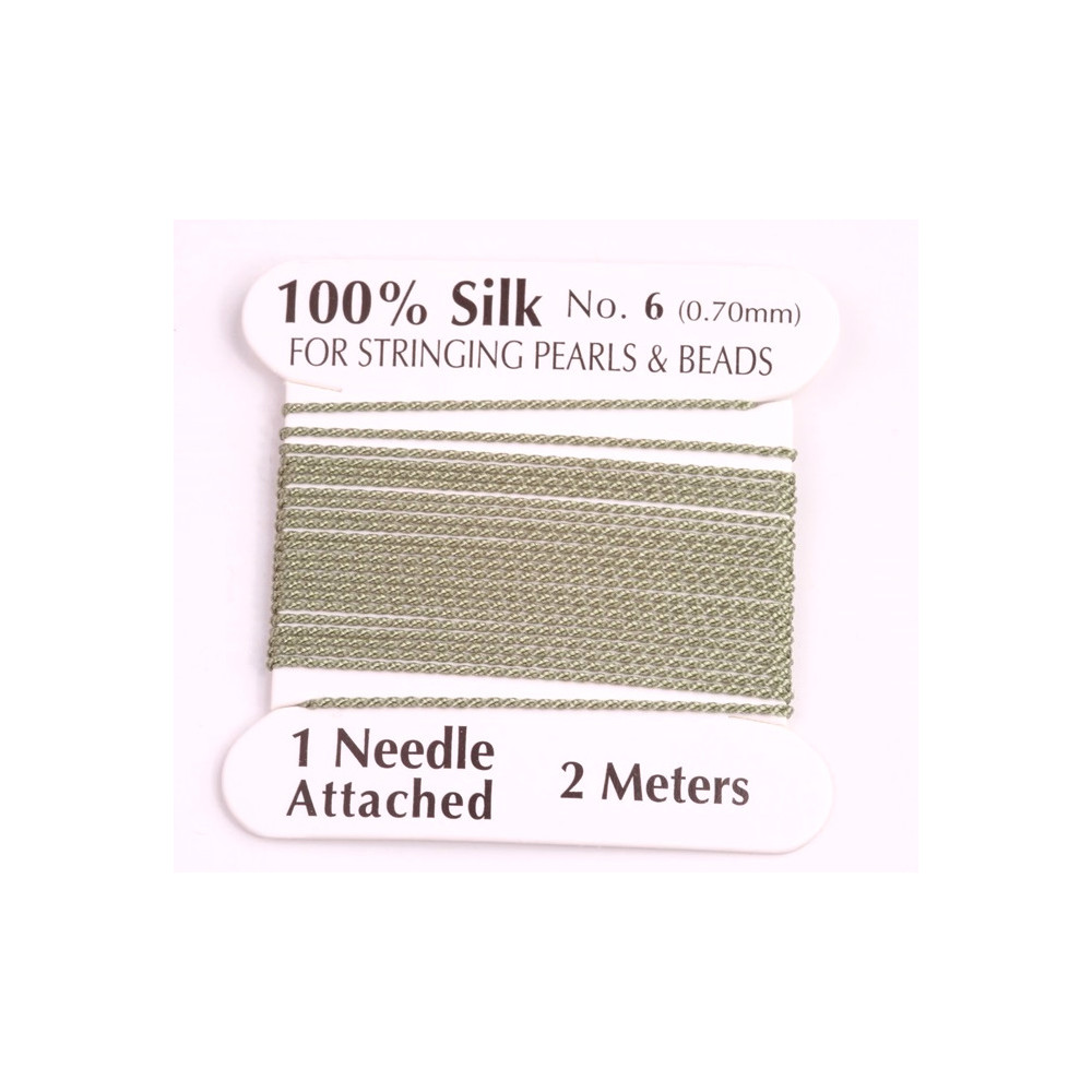 Hedvábná nit s jehlou Průměr: 0,7 mm Balení: 2 metry Barva: Světle zelená (Pale Green)