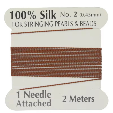 Hedvábná nit s jehlou Průměr: 0,7 mm Balení: 2 metry Barva: Tmavě hnědá (Brown)