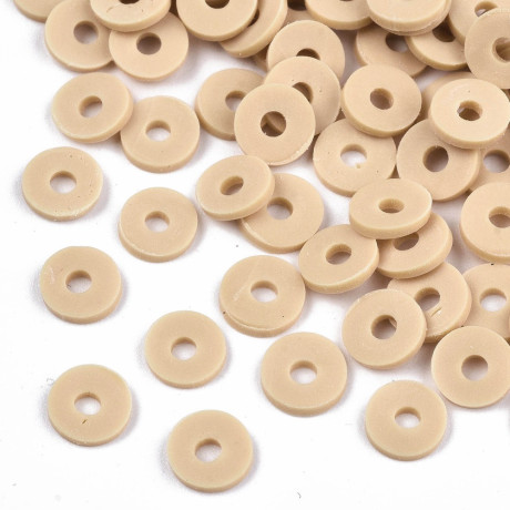 Heishi korálky vyrobené z polymerové hmoty poskytují velkou rozmanitost barev. Každý korálek má standardní velikost přibližně 8 x 1 mm s otvorem o průměru 2 mm, což je ideální pro většinu šperkařských projektů.