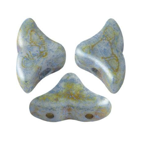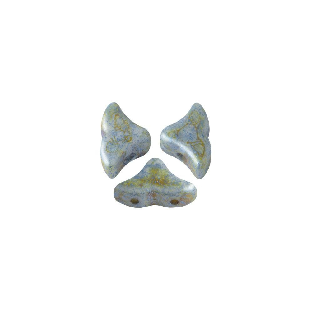 Modrá a zelená barva s efektem spotted dodává povrchu hloubku a organický vzhled, který připomíná přírodní kameny. Rozměr 6 x 10 mm a tvar trojúhelníku se zaoblenými hranami činí z těchto korálků ideální prvek pro strukturované vzory. České mačkané sklo zaručuje barevnou stálost a vysokou kvalitu každého kusu v balení po 12 kusech.